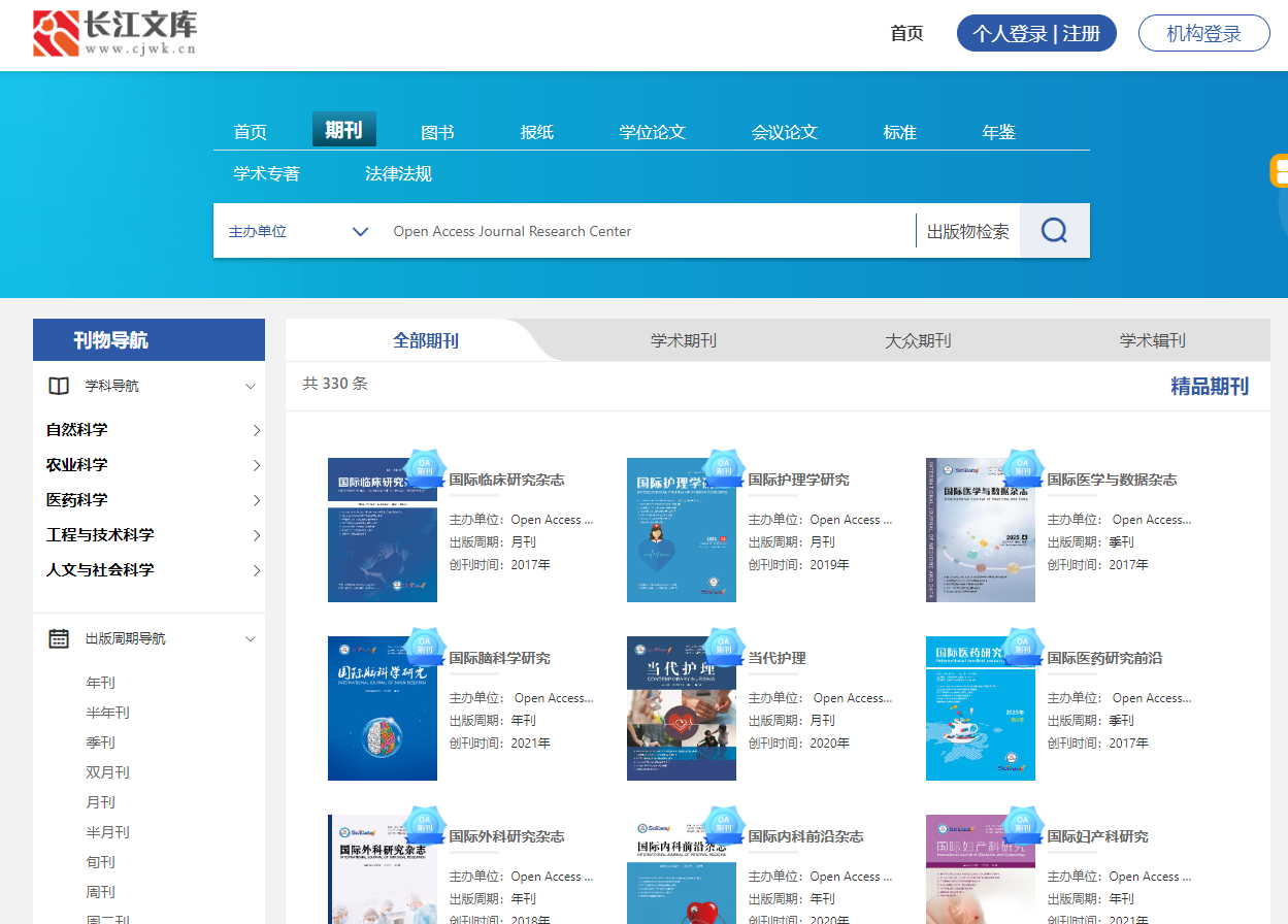 图一:OAJRC在长江文库中的检索列表截图